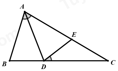 Cho tam giác \(ABC\) có \(AC > AB\), đường phân giác \(AD\). Lấy điểm \(E\) thuộc cạnh \(AC\)sao cho \(\angle CDE = \angle BAC\).
