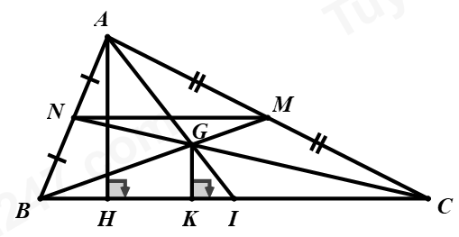Cho tam giác \(ABC\), hai trung tuyến \(BM\) và \(CN\) cắt nhau tại \(G\). Tính diện tích tam giác