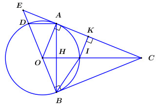 4) OC cắt AB tại H và cắt (O) tại I. Chứng minh rằng \(\dfrac{{HI}}{{HC}} < \dfrac{1}{2}\) (0,5 điểm)