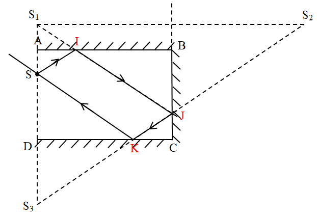 Các gương phẳng AB, BC, CD được sắp xếp thành hình chữ nhật ABCD như hình vẽ. Dựng tia sáng