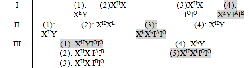 III. II2 và II4 có thể có nhóm máu A hoặc B.