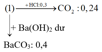 Hấp thụ hết 4,48 lít khí CO2 (đktc) vào dung dịch chứa x mol KOH và y mol K2CO3 thu được 200 ml dung dịch X. Cho từ từ đến hết 100 ml dung dịch X vào 300 ml dung dịch HCl 0,5M thu được 2,688 lít khí (ở đktc). Mặt khác 100 ml dung dịch X tác dụng với dung dịch Ba(OH)2 dư thu được 39,4 gam kết tủa. Giá trị của x là