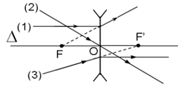 + Tia tới song song với trục chính thì tia ló kéo dài đi qua tiêu điểm.