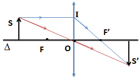 Hình vẽ dưới đây cho biết \(\Delta \) là trục chính của một thấu kính, S là điểm sáng và