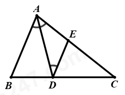 Cho tam giác \(ABC\). Đường phân giác của \(\angle BAC\) cắt cạnh \(BC\) ở \(D\), biết \(BD = 7,5cm\,,\,CD = 5cm\). Qua \(D\) kẻ đường thẳng song song với \(AB\) cắt cạnh \(AC\) tại \(E\). Tính \(AE,EC,DE\) nếu \(AC = 10cm\).