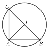 Tam giác vuông cân có độ dài cạnh góc vuông bằng \(2\,\,cm\). Bán kính đường tròn ngoại tiếp