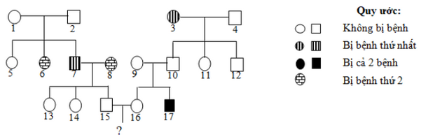Phả hệ dưới đây mô tả hai bệnh di truyền phân li độc lập với nhau, mỗi bệnh do một gen