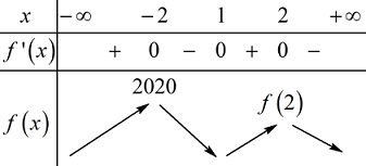 - Dựa vào đồ thị \(f'\left( x \right)\) lập BBT của hàm số \(f\left( x \right)\) và suy ra được \(f\left( x \right) \le 2020,\,\,\forall x \in \mathbb{R}\).