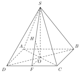 - Trong \(\left( {SOF} \right)\) kẻ \(OH \bot SF\) chứng minh \(OH \bot \left( {SCD} \right)\).