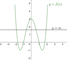 Cho đồ thị của hàm số \(y = f\left( x \right)\) như hình vẽ. Tìm tất cả các giá trị của \(m\) để phương trình \(f\left( x \right) = m\) có 4 nghiệm phân biệt.