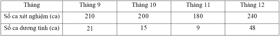 Tổng hợp kết quả xét nghiệm Covid của phường Hạ Đình trong bốn tháng cuối năm 2021, ta được bảng sau: