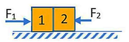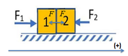 Trên mặt bàn phẳng nhẵn nằm ngang đặt hai vật nhỏ 1 và 2 có cùng khối lượng và sát nhau. Nếu chúng chịu tác dụng của các lực đẩy \({F_1},\,\,{F_2}{\mkern 1mu} \left( {{F_1} > {F_2}} \right)\) thì lực tác dụng của vật 1 lên vật 2 là