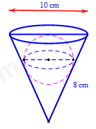 Bạn An có một cốc hình nón có đường kính đáy là 10cm và độ dài đường sinh là 8cm. Bạn dự định đựng một viên bị hình cầu sao cho toàn bộ viên bi nằm trong cốc (không phân nào của viên bị cao hơn miệng cốc). Hỏi bạn An có thể đựng được viên bị có đường kính lớn nhất bằng bao nhiêu?