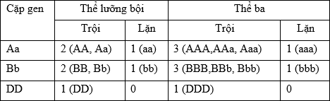 1 gen có 2 alen trong quần thể sẽ có 3 kiểu gen bình thường, 4 kiểu gen thể ba.