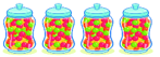 Mỗi lọ có 100 viên kẹo, 4 lọ có 400 viên kẹo.