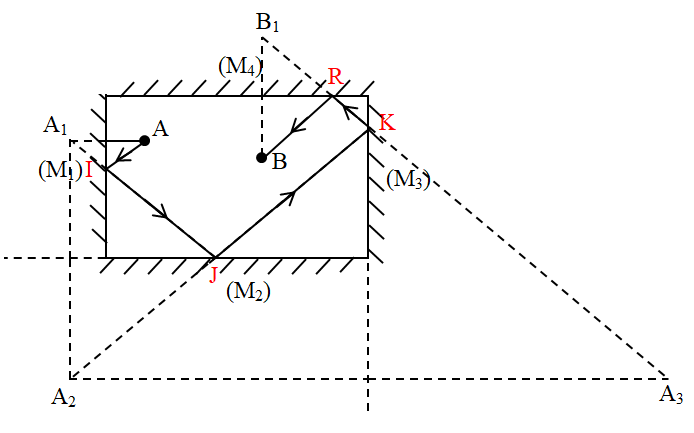 Có bốn gương phẳng ghép thành hình hộp như trong hình vẽ. A và B là hai điểm bên trong hình