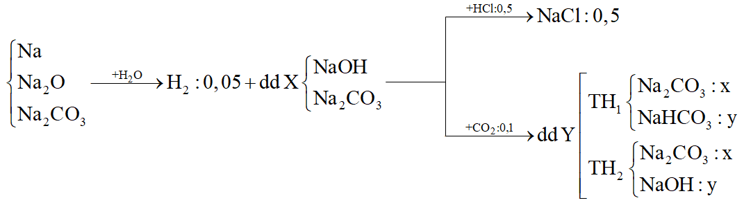 Cho m gam hỗn hợp M gồm Na, Na2O, Na2CO3 vào nước, thu được dung dịch X và 1,12 lít khí H2. Chia