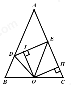 \(\angle DOE = \angle B = \angle C\)\( \Rightarrow \Delta DOE \sim \Delta DBO(c.g.c)\)