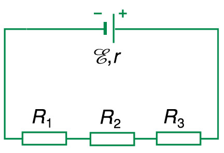 Định luật Ôm đối với toàn mạch: \(I = \dfrac{E}{{{R_N} + r}}\)