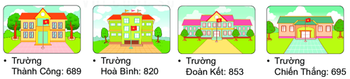 So sánh số học sinh của các trường rồi sắp xếp số bé trước, số lớn sau.