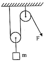 Cho cơ hệ như hình vẽ bên. Biết vật m = 50kg, các ròng rọc nhẹ và không có ma sát, dây kéo mảnh, nhẹ và không co dãn.