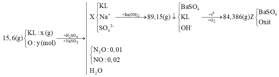 Hòa tan hoàn toàn 15,6 gam hỗn hợp gồm Fe, Fe3O4, Fe2O3, Mg, MgO và CuO vào 200 gam dung dịch H2SO4 và NaNO3, thu được dung dịch X chỉ chứa muối sunfat trung hòa của kim loại. Hỗn hợp khí Y gồm 0,01 mol N2O và 0,02 mol NO. Cho X phản ứng với dung dịch Ba(OH)2 dư thu được 89,15 gam kết tủa. Lọc kết tủa nung trong không khí đến khối lượng không đổi thu được 84,386 gam chất rắn Z. Phần trăm khối lượng của BaSO4 trong Z là