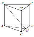 Cho lăng trụ đứng ABC.A’B’C’ có đáy ABC là tam giác đều cạnh \(a\sqrt 3 \). Gọi M là trung