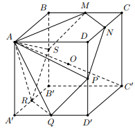 - Gọi O là tâm hình lập phương ABCD.A’B’C’D’. Chứng minh MNPQRS là lục giác đều và tính diện tích của nó.