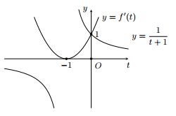 Cho f(x) là hàm số bậc ba. Hàm số f’(x) có đồ thị như hình vẽ. Tìm tất cả các giá trị thực của tham số m để phương trình f(ex – 1) – x – m = 0 có hai nghiệm thực phân biệt?