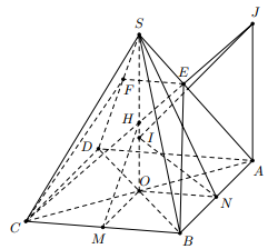 Cho hình chóp tứ giác đều S.ABCD. Một mặt cầu (J) (J và S cùng phía với (ABCD)) tiếp xúc với