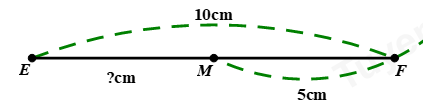 Gọi \(M\) là một điểm thuộc đoạn thẳng \(EF\). Biết \(EF = 10cm\) và \(MF = 5cm\). So sánh hai đoạn thẳng \(EM\) và \(MF\).