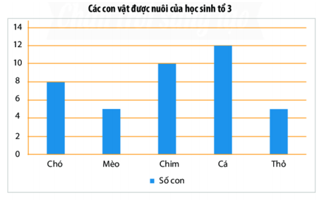 Quan sát biểu đồ, chỉ ra tên con vật được nuôi nhiều nhất của các học sinh: