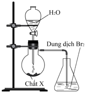 Dựa vào hình vẽ thí nghiệm: X có khả năng tác dụng với H2O, sinh ra chất khí phản ứng được với dung dịch Br2.