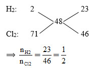 - Áp dụng đường chéo để tìm tỉ lệ số mol H2 và Cl2.
