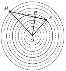 Ở mặt nước, một nguồn sóng đặt thai điểm O dao động điều hòa theo phương thẳng đứng. Sóng truyền trên mặt nước có bước sóng 5cm. M và N là hai điểm trên mặt nước mà phần tử nước ở đó dao động cùng pha với nguồn. Trên các đoạn OM, ON và MN có số điểm mà phần tử nước ở đó dao động ngược pha với nguồn lần lượt 5,3 và 3. Góc MON có giá trị gần nhất với gái trị nào sau đây?