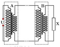 Điện năng được truyền tải từ máy hạ áp A đến máy hạ áp B bằng đường dây tải điện một pha như sơ đồ hình bên. Cuộn sơ cấp của A được nối với điện áp xoay chiều có giá trị hiệu dụng U không đổi, cuộn thứ cấp của B được nối với tải tiêu thụ X. Gọi tỉ số giữa số vòng dây của cuộn sơ cấp và số vòng dây của cuộn thứ cấp của A là \({k_1}\), tỉ số giữa số vòng dây của cuộn sơ cấp và số vòng dây của cuộn thứ cấp của B là \({k_2}\). Ở tải tiêu thụ, điện áp hiệu dụng như nhau, công suất tiêu thụ điện như nhau trong hai trường hợp: \({k_1} = 32\) và \({k_2} = 68\) hoặc \({k_1} = 14\) và \({k_2} = 162\). Coi các máy hạ áp là lí tưởng, hệ số công suất của các mạch điện luôn bằng 1. Khi \({k_1} = 32\) và \({k_2} = 68\) thì hiệu suất truyền tải điện năng từ A đến B là: