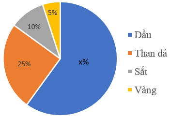 Lấy 100% trừ đi tỉ lệ phần trăm của than đá, sắt và vàng.