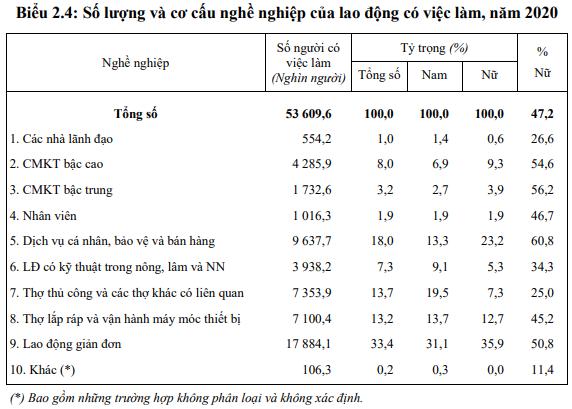 Báo cáo điều tra lao động việc làm của tổng cục thống kê năm 2020.