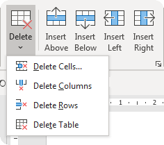 3) Để xoá hàng (hay cột) của bảng, đặt con trỏ soạn thảo vào một ô bất kì của hàng hay cột đó rồi nháy chuột vào lệnh (...) rồi chọn (...) hay (...).