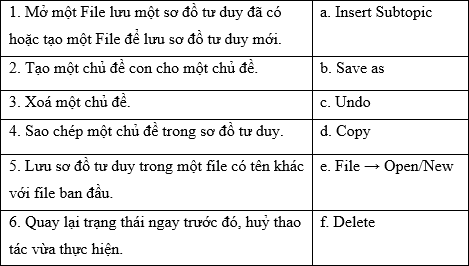 Nối các thao tác (1 - 6) với lệnh tương ứng (a -