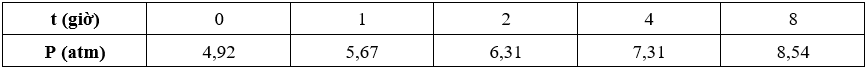 Người ta tiến hành nung nóng 0,1 mol SO2Cl2 ở 3270C trong bình phản ứng có dung tích 1 lít và đo áp suất của hỗn hợp các chất trong bình thì thu được các số liệu thực nhiệm sau: