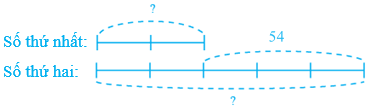 Số thứ nhất kém số thứ hai là 54. Tỉ số của hai số đó là \(\dfrac{2}{5}\). Tìm hai số đó.