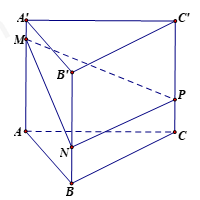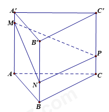 Cho lăng trụ đứng \(ABC.A'B'C'\), gọi \(M,N,P\) là các điểm nằm trên các cạnh \(AA',BB'\) và