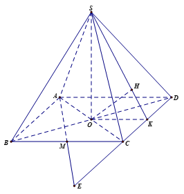 Cho hình chóp \(S.ABCD\) có các cạnh bên bằng \(a\), đáy \(ABCD\) là hình vuông tâm \(O\) cạnh \(a\).