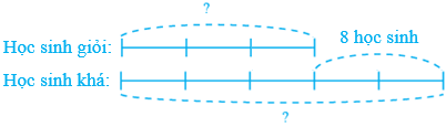 Lớp 4A có số học sinh giỏi ít hơn số học sinh khá là 8 em. Số học sinh giỏi bằng