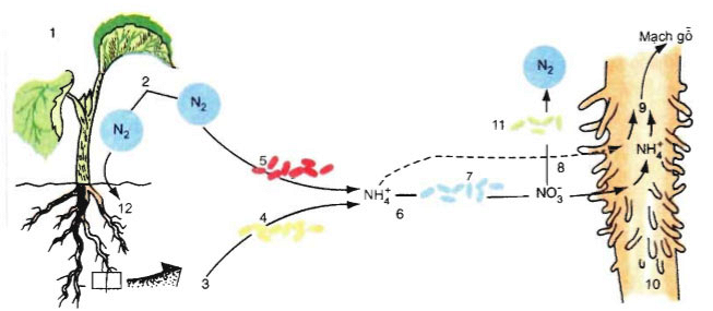 Nhận định nào sau đây sai khi nói về quá trình được thực hiện bởi vi khuẩn kí hiệu số 11 ở hình 1?