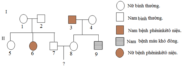 Ở người, bệnh phêninkato niệu do một trong hai alen của gen nằm trên nhiễm sắc thể thường quy định; Bệnh máu khó đông do một trong hai alen của gen nằm trên đoạn không tương đồng của nhiễm