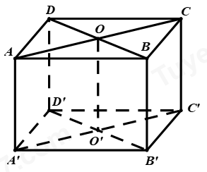 Cho hình hộp chữ nhật \(ABCD.A'B'C'D'\) có \(ABCD\) là hình vuông. Gọi \(O\) là giao điểm của \(AC\)