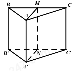 Cho hình lăng trụ đứng tam giác \(ABC.A'B'C'\) có đáy là \(\Delta ABC\) cân tại \(A\). Gọi \(M,N\)