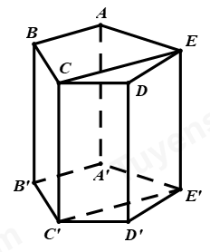 Hình lăng trụ ngũ giác đều là \(ABCDE.A'B'C'D'E'\) có cạnh đáy bằng \(a\). Biết hiệu giữa các